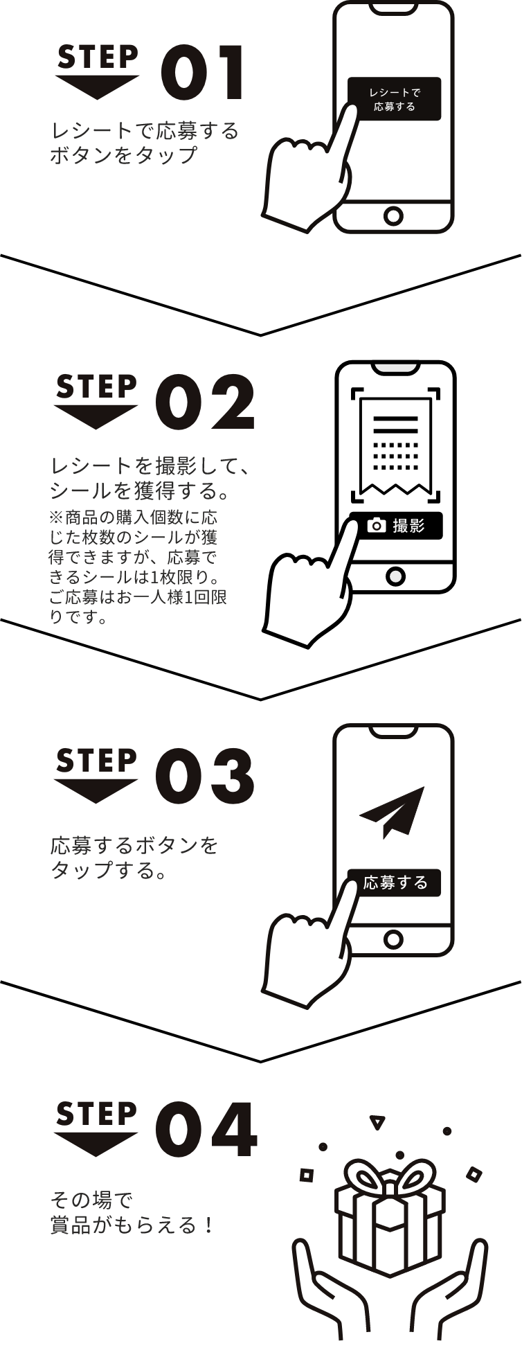 ※レシート情報の読み取りに際し、キャンペーン事務局側での確認中に応募期間を過ぎた場合に関しては、応募シール付与後2026/1/9(金)23:59までご応募いただけます。また応募シールが残っている方に関しても同様の時刻までご応募いただけます。