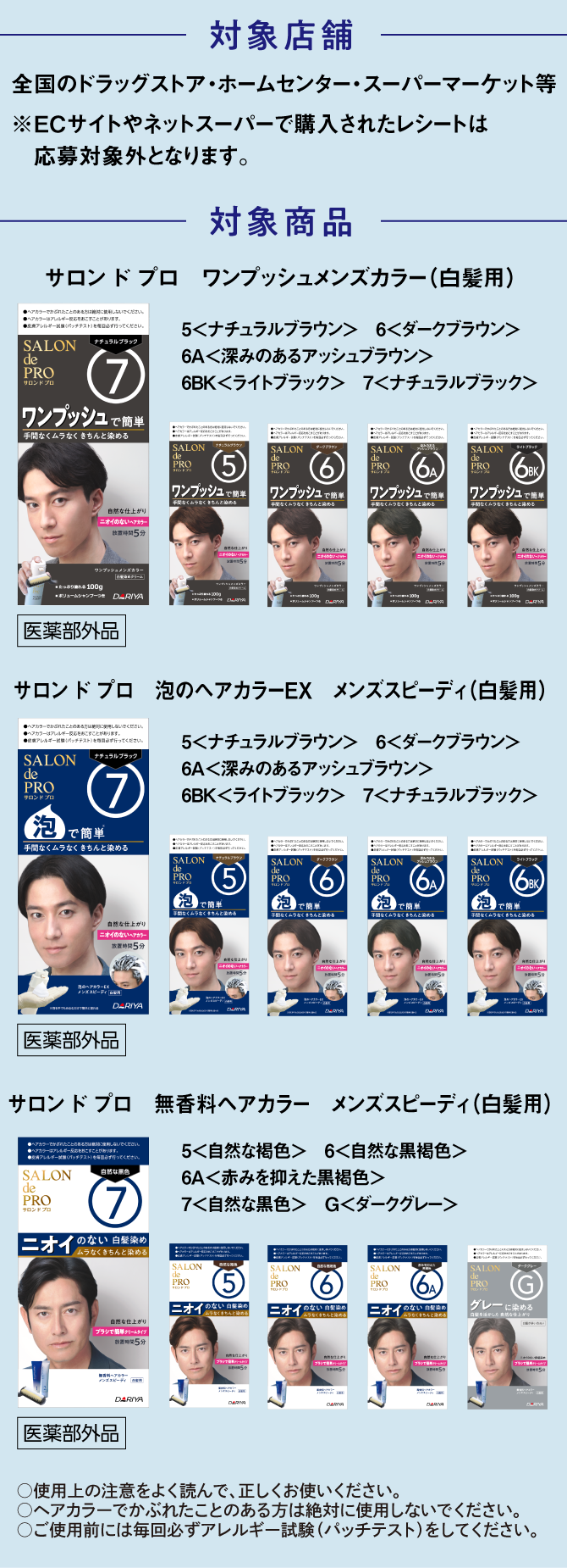 有効レシート期間内に、店頭で購入した下記内容が記載されたレシートが有効です。